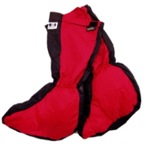 シューズの上部分とミトンの下部分にはほとんどダウンは入っていません。ゴアテックスとダウンプルーフの2重構造です。 |