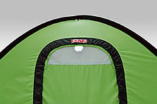 また、出入り口上部にはモスキートネット付きのベンチレーションが付いていて、後部ベンチレーションとのコンビネーションにより通風性を向上させています |