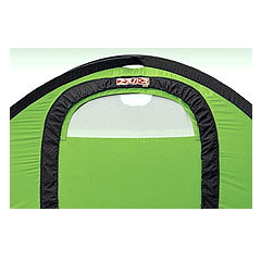 だけでポール通しが完了するため、今までのように反対側に移動しポールをグロメットに固定するという面倒さがなくなりました。また、ポールはどちら側からも差し込めるため、設営時のテントの向きを考える煩わしさがありません。 |