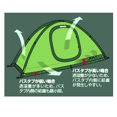 また、出入り口上部にはモスキートネット付きのベンチレーションが付いていて、後部ベンチレーションとのコンビネーションにより通風性を向上させています |