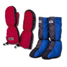 最高級のダウンを使用したゴアドライロフトのダウンシューズとダウンミトンです。シューズは膝下まで生地があるのでそのままテントの外に出ても安心です。ミトンも肘下まで生地があり保温性抜群です。足裏と手のひらは強度の高い生地で補強されていて安心です。(冬のテント泊の必需品です。) |