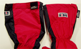 | シューズの足裏とミトンのヒラ部分はゴアテックス生地の上から当てをしています。滑りにくく、強度も非常に高いです。 |