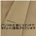 パンツの両足の正面の折り目部分は全面にステッチが縫われています。