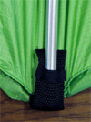 ポールは下のポールソケットにポールを差込、ポール上部をツェルトに付いているグロメットに差し込むだけです。ポールに安定感が非常に出るので、風の強い日でも安心です。 |