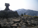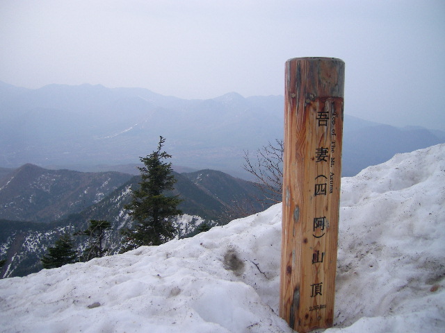 ●ほどなく四阿山到着です。標識は雪の中頭を出しています。