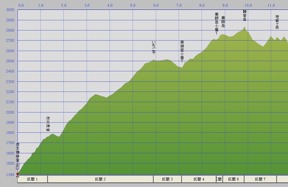 登山口〜夜叉神峠〜南御室小屋〜薬師岳〜観音岳〜地蔵岳