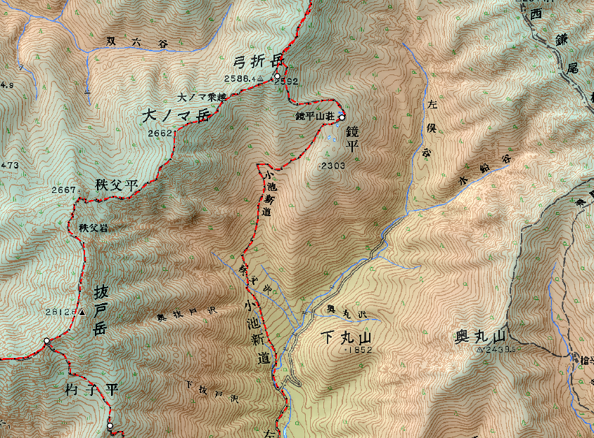 ●ここも沢筋のルートで滑りやすいので注意しましょう。登りを登りきれば、三俣に戻ります。
