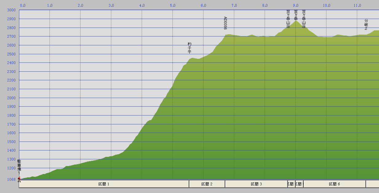 笠新道の入口までは、林道を進みます。ここはウォーミングアップでOKです。