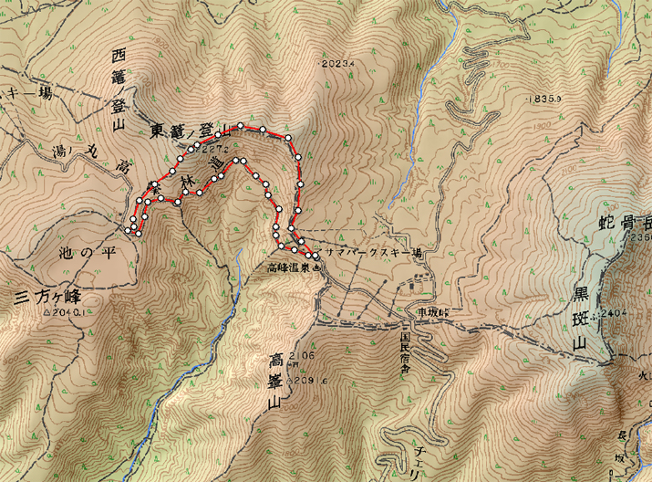 高峰温泉〜水ノ塔山〜東籠ノ登山〜兎平〜林道走りで高峰温泉