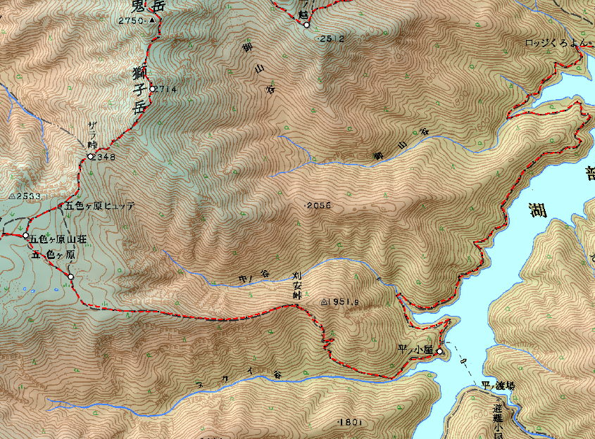 何回か沢をトラバースしながら、進んでいくと、ロッジくろよんです。