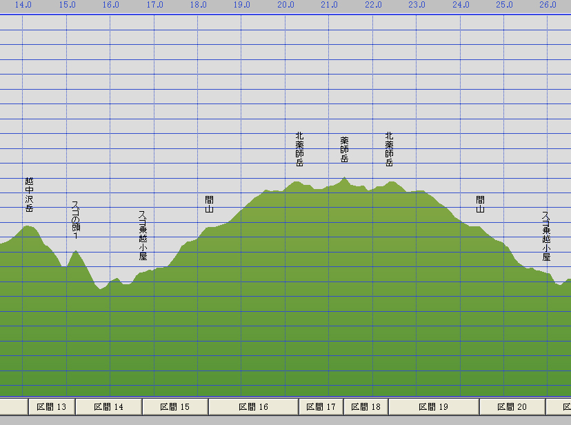 ●ここから引き返します。越中沢岳が最大の山場ですが、まだ元気があればOKでしょう。